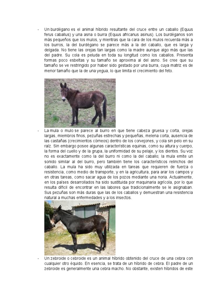 Por el contrario cruzando una burra o asna con un caballo obtenemos otro tipo de animal tambin hbrido los cuales pueden ser machos o hembras y que son conocidos genricamente como burdgano o macho romo. Enfermedad propia del casco del asno y del caballo. En lugar de por raza se debe a una incierta ascendencia en el Nuevo Mundo.
